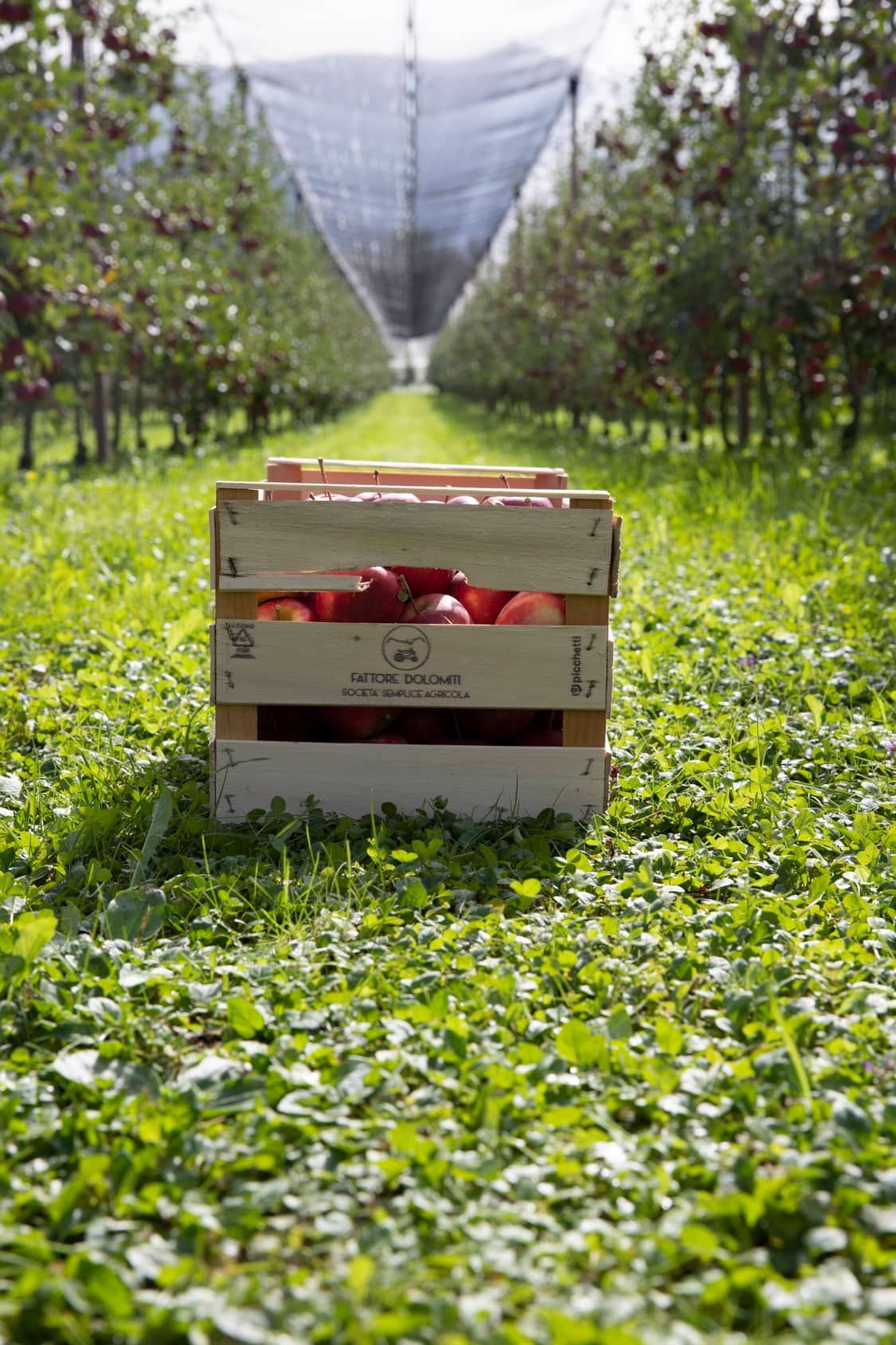 I meli godono di un’ottima esposizione e l’area di coltivazione si trova all’altitudine di 450mt slm ideale per beneficiare del gradiente termico adatto alla meli-coltura di qualità̀, con ottimi risultati di pezzatura e maturazione. La nostra filosofia è di poter mettere a disposizione dei consumatori, una mela da mangiare con la buccia, senza residui di trattamenti di sintesi chimica, come nel meleto domestico.